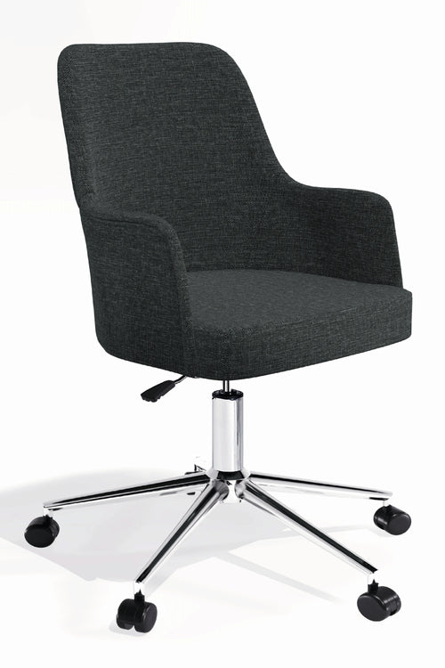 Louis Çalışma Sandalyesi – Silinebilir Keten Kumaş (Koyu Gri - Krom Ayak)