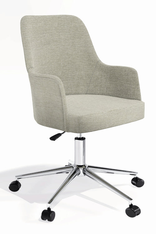Louis Çalışma Sandalyesi – Silinebilir Keten Kumaş (Açık Gri - Krom Ayak)